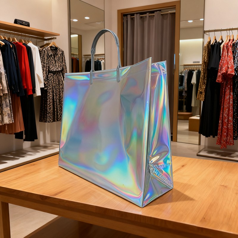 Очаровательные визуальные эффекты: радужная отделка и динамичные голографические узоры, которые реагируют на свет и движение, создавая постоянно меняющиеся спектры. Настраиваемая печать товарных знаков и узоров. Уникальная внешняя привлекательность, которая выделяется в любой обстановке. Конструкция из высококачественного материала: высококачественный пластик с прочной лазерной ламинацией. Устойчивое к царапинам и водостойкое покрытие поверхности. Усиленные ручки и точки нагрузки для большей долговечности. Сохраняет структурную целостность при большом весе. Расширенные функциональные возможности: пластиковый материал и новая технология могут обеспечить водонепроницаемую защиту содержимого, одновременно облегчая очистку поверхности. Максимальная нагрузка 10 кг обеспечивает удобный захват. Ценность улучшения бренда: создание незабываемых впечатлений от распаковки, отличный внешний вид способствует распространению информации и видимости в социальных сетях, расширяя узнаваемость бренда за счет многократного использования и повышая узнаваемость бренда на высоком уровне. Экологические преимущества: конструкция многоразового использования сокращает количество отходов упаковки. Прочная конструкция обеспечивает длительный срок службы.
