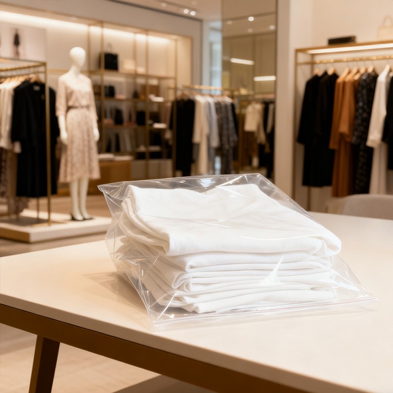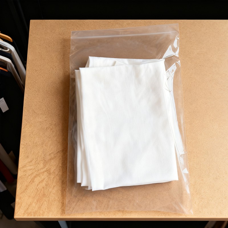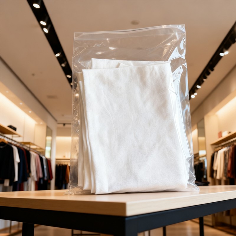 Защита одежды: Наши полиэтиленовые пакеты могут служить надежным барьером от распространенных загрязняющих веществ. Они эффективно предотвращают попадание пыли, грязи и влаги во время хранения и транспортировки. Это гарантирует, что одежда, от нежного шелка до освежающих хлопчатобумажных рубашек, от складов до рук клиентов, будет содержаться в чистоте и порядке. Четкая видимость: прозрачность полиэтиленового материала обеспечивает отличную видимость продукта. Он может полностью продемонстрировать цвет, текстуру и дизайн одежды, а также помочь быстро идентифицировать инвентарь, не открывая каждую сумку. Поверхность без печати: поскольку печать отсутствует, нет необходимости беспокоиться о загрязнении продукта чернилами, что исключает риск появления неприглядных пятен или следов на продукте. Убедитесь, что они выглядят безупречно после открытия упаковки. Эта функция имеет решающее значение для белой, светлой или дорогой одежды. Клиенты также могут использовать другие методы, чтобы дифференцировать продукты в соответствии со своими потребностями. Его также можно использовать как универсальную упаковку для продажи. Прочный и устойчивый к проколам: несмотря на легкую текстуру, полиэтиленовый материал обладает превосходной прочностью и устойчивостью к разрыву. Он выдерживает строгие требования по погрузочно-разгрузочным работам, упаковке и транспортировке, снижает риск повреждения пакетов и обеспечивает безопасность вашей продукции на протяжении всей цепочки поставок. Экономически эффективный и легкий: эти сумки обеспечивают баланс между производительностью и экономичностью. Их меньший вес помогает снизить транспортные расходы, что делает их экономически разумным выбором для предприятий любого размера, от небольших бутиков до крупных производителей. Настраиваемые размеры и простота запечатывания: Настраиваемый размер любого размера, подходит для всех товаров: от носков и аксессуаров до платьев и курток в полный рост. Эти пакеты могут поставляться в рулонах для высокоскоростной автоматической упаковки или в виде отдельных пакетов для ручного использования. Они оснащены безопасной самоклеящейся двусторонней лентой для быстрого и легкого заклеивания.