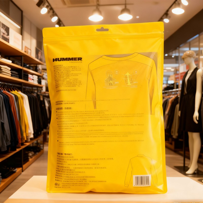 Для упаковки одежды — стоячая сумка с ламинированной молнией из ПЭТ