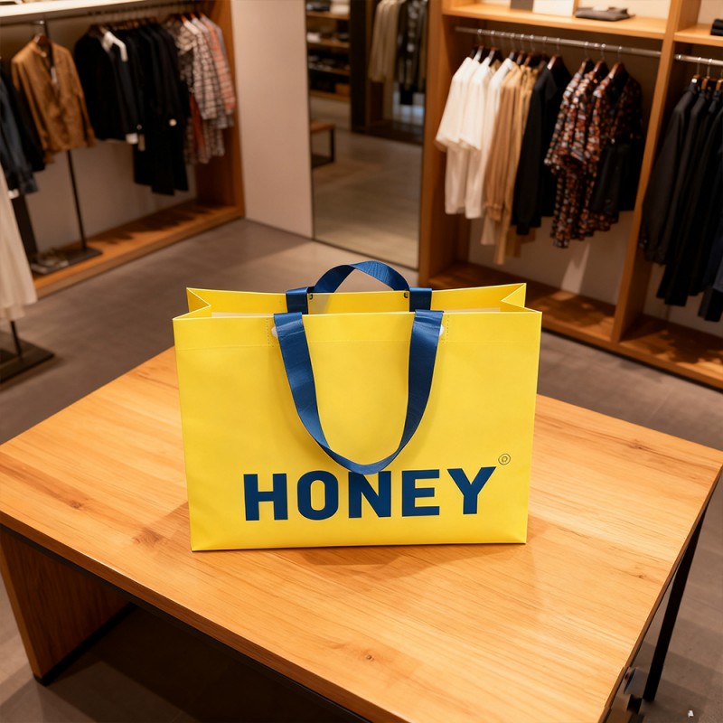 QINGDAO RED GOLDEN STAR PACKAGING AND PRINTING CO., LTD. Сумка на плечо из ламинированной полипропиленовой крафт-бумаги, совместимая с экологичностью и практичностью. Ламинирование белой крафт-бумаги и композитного материала ПП несет в себе как экологическую ответственность, так и коммерческую целесообразность, а также имеет красивый и элегантный внешний вид, который полностью соответствует требованиям к упаковке высококачественной продукции.